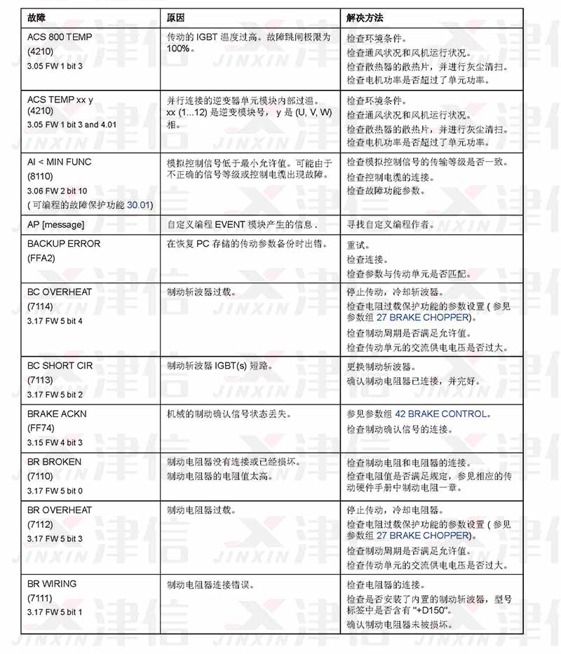 ABB ACS800變頻器在出現(xiàn)故障時(shí),在控制盤(pán)顯示器中會(huì)顯示警告或故障信息提示信息,大多數(shù)警告和故障原因可以利用這些信息識(shí)別出來(lái)并給以排除。