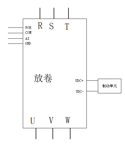 - 放卷變頻器采用開環(huán)轉(zhuǎn)矩控制,電機(jī)處于發(fā)電狀態(tài),必需接制動單元,并且與收卷變頻器共直流母線;